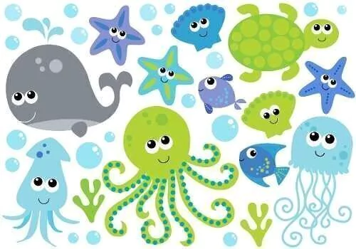 El Kit de vinilo autoadhesivo FONDO DEL MAR viene troquelado, listo para pegar donde quieras (paredes, muebles, electrodomésticos)