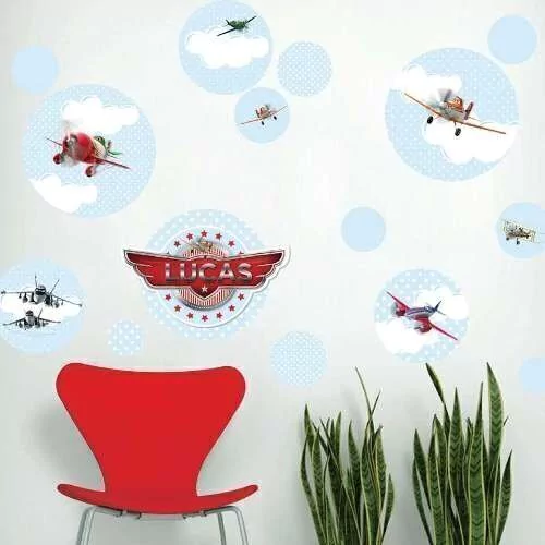 El Kit de vinilo AVIONES DE DISNEY viene troquelado, listo para pegar donde quieras (paredes, muebles, electodomésticos) Personalizamos tu vinilo: una vez que comprás, nos decis con que nombre lo querés! El Kit incluye: 3 círculos de 29 cm. de diámetro 3 círculos de 20 cm. de diámetro 4 círculos de 12 cm. de diámetro 3 círculos de 10 cm. de diámetro 2 círculos de 7,5 cm. de diámetro Vos recibís una única plancha, de la que despegás facilmente los círculos y los instalás donde querés. Vinilizá tu cuarto, tu casa, tu vida! PREGUNTAS FRECUENTES: * Tenes stock? si, siempre hay, porque los producimos a pedido, tardamos máximo 5 días hábiles! * Se puede cambiar un color? si, pero puede demorar un poco más... * Lo puedo aplicar en cualquier lado? si, si la superficie es bien lisa, pueden ser paredes si estan pintadas con pintura plástica, nunca rugosas, puertas, muebles laqueados, electrodomésticos, vidrios... * Es fácil de pegar? si, muy fácil! es como un sticker.