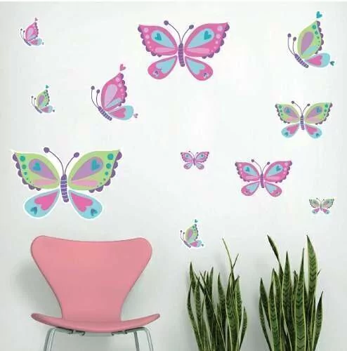 El Kit de vinilo figuras sueltas Mariposas viene troquelado, listo para pegar donde quieras (paredes, muebles, electodomésticos)