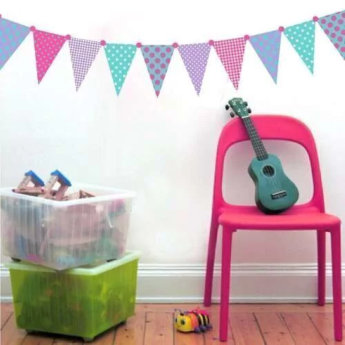 El Kit incluye 14 banderines de 17 x 25 cm. y 19 circulitos que los podés usar para poner entre los banderines o para lo que quieras!