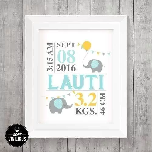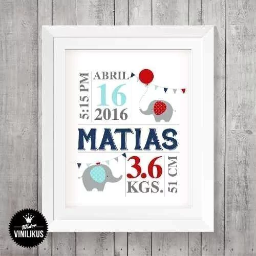LAMINA PERSONALIZADA IMPRIMIBLE El recuerdo más lindo del nacimiento de tu bebé! Conservá para siempre un recuerdo de ese momento mágico y único. Divino para decorar el cuarto de tus chicos o para regalar como recuerdo del nacimiento. Te la enviamos personalizada y lista para imprimir cuantas veces quieras. Cómo lo pedís Una vez que hacés tu compra, nos mandás los siguientes datos para que armemos tu lámina: · Nombre del bebé · Fecha del nacimiento · Hora del nacimiento · Peso al nacer · Largo al nacer Qué te enviamos Te enviamos por mail tu lámina de nacimiento personalizada en formato digital en tamaño 20 x 25 cm. Te sugerimos imprimir en casa de fotografía en papel fotográfico Kodak o similar para que tu lámina dure para siempre, ya que los colores no se deterioran con la exposición a la luz. También podés imprimir en imprenta digital o en una impresora casera, en ese caso tené en cuenta que los colores pueden degradarse con el tiempo. Igual tenes el archivo para imprimirlo cuantas veces quieras.