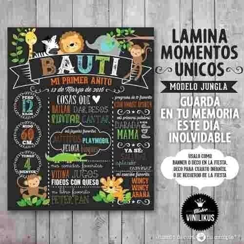 LAMINA IMPRIMIBLE TIPO PIZARRA PERSONALIZADA "MOMENTOS ÚNICOS" Con los diseños exclusivos de Decora tu Cumple! Una idea divina y súper canchera para atesorar momentos importantes en nuestra vida, como el Primer Añito de nuestro bebé, Bautismo y por supuesto otros cumples (todos son momentos únicos e irrepetibles!) Con nuestras láminas podés decorar el salón y armar un lindo fondo para sacar fotos en el festejo, usarla para decorar el cuarto de tu nene, imprimir como recuerdo, postales de souvenir, o lo que quieras! Te enviamos la lámina en FORMATO DIGITAL por mail, totalmente personalizada en tamaño 20 x 25 cm. o 40 x 50 cm. y con los datos del nene/nena. Te la enviamos lista para imprimir o bien en casa o en la tienda gráfica o de fotos más cercana. Qué te enviamos? Te enviamos por mail tu lámina de recuerdo personalizada en formato digital en tamaño 20 x 25 cm. Pedilo en la medida que prefieras: 13 x 18 cm 20 x 25 cm 40 x 50 cm Consultá por otras medidas y otros motivos! Cómo lo pedís: Una vez que hiciste tu compra, vas a recibir un mail solicitando la siguiente info, aunque puede variar según la edad del nene/a: 1. Nombre del nene/nena o diminutivo que quieras usar 2. Edad 3. Cantidad de dientes, altura y peso 4. 3 cosas que le gusta hacer 5. Libro favorito 6. Canción favorita 7. Programa de tv o peli favorita 8. 3 cosas que sabe hacer 9. Primeras palabras 10. 3 comidas favoritas En cuánto tiempo está listo? Una vez que recibimos esta info (toda junta!), tu linda lámina estará lista en una semana. Empezá a construir tus recuerdos con nuestras láminas personalizadas!