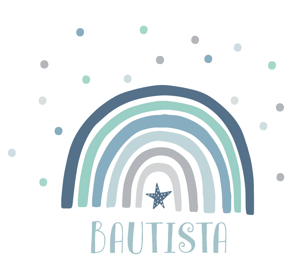 El Kit de vinilo ARCO IRIS NORDICO PASTEL VARON PERSONALIZADO viene troquelado, listo para pegar donde quieras (paredes, muebles, electrodomésticos)