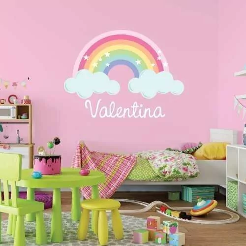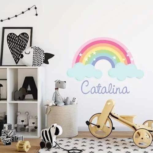 El Kit de vinilo ARCO IRIS PASTEL viene troquelado, listo para pegar donde quieras (paredes, muebles, electrodomésticos) PERSONALIZADO! Pedilo con el nombre que quieras!!!! Medida del pliego: 1 metro x 60 cm. Medida del Arcoiris: 96 x 55 cm. (ancho x alto) Incluye el arcoiris y un nombre en vinilo de 60 cm de ancho Una vez que haces la compra avisanos con que nombre lo queres y en que color. Tambien es importante que nos avises si por el color de la pared hay que modificar el color de las nubes. Vos recibís una única plancha, con la que transferís facilmente los elementos donde querés. Vinilizá tu cuarto, tu casa, tu vida! PREGUNTAS FRECUENTES: * Tenes stock? si, siempre hay, porque los producimos a pedido, tardamos máximo 5 días hábiles! * Se puede cambiar un color? si, pero puede demorar un poco más... * Lo puedo aplicar en cualquier lado? si, si la superficie es bien lisa, pueden ser paredes si estan pintadas con pintura plástica, nunca rugosas, puertas, muebles laqueados, electrodomésticos, vidrios... * Es fácil de pegar? si, muy fácil! es como un sticker. * Lo puedo retirar en persona? si, de lunes a viernes de 9 a 13 y de 14 a 19 hs en Villa Crespo.
