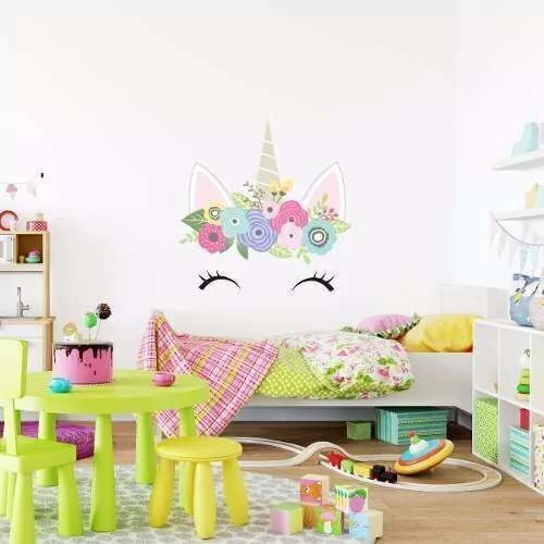 El Kit de vinilo UNICORNIO PASTEL viene troquelado, listo para pegar donde quieras (paredes, muebles, electrodomésticos) Medida armado : 83 x 85 cm. Vos recibís una plancha de 1 metro x 70 cm, con la que transferís facilmente el Unicornio donde querés. viene el cuerno, orejas y flores por un lado y los ojos aparte (ver la imagen 6) Vinilizá tu cuarto, tu casa, tu vida! PREGUNTAS FRECUENTES: * Tenes stock? si, siempre hay, porque los producimos a pedido, tardamos máximo 5 días hábiles! * Se puede cambiar un color? si, pero puede demorar un poco más... * Lo puedo aplicar en cualquier lado? si, si la superficie es bien lisa, pueden ser paredes si estan pintadas con pintura plástica, nunca rugosas, puertas, muebles laqueados, electrodomésticos, vidrios... * Es fácil de pegar? si, muy fácil! es como un sticker.