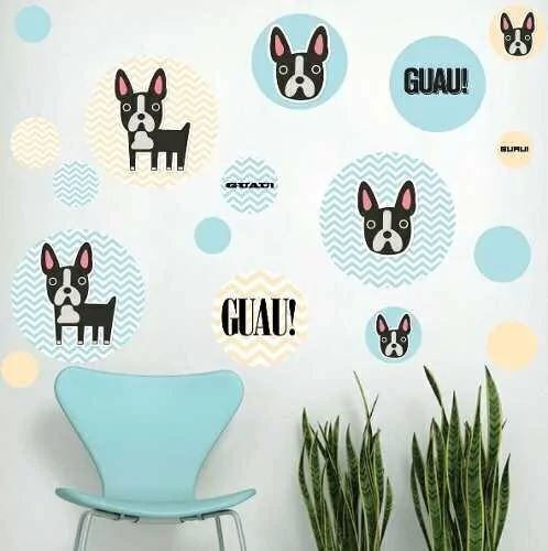 El Kit de vinilo autoadhesivo Perritos modernos 1 viene troquelado, listo para pegar donde quieras (paredes, muebles, electrodomésticos)