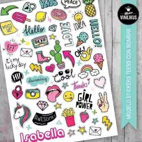 El Vinilo stickers teens incluye una plancha de 1 metro x 70 cm con 50 stickers troquelados ideales para decorar el cuarto de los adolescentes.. frases, dibujitos, todo lo que ves publicado en la tercer imagen. Cada elemento viene troquelado por separado. Podes pegarlos como quieras, juntos o separados, en la pared, en un vidrio, puerta, heladera, sobre un mueble o en la compu. Todas las figuras tienen un borde blanco alrededor, queda perfecto tanto en paredes blancas como de color! Pedilo con el nombre que quieras! Vinilizá tu cuarto, tu casa, tu vida! PREGUNTAS FRECUENTES: Tenes stock? Si, siempre hay, porque los producimos a pedido, tardamos máximo 5 días hábiles! Se puede cambiar los colores? Si, se puede. Según el caso puede tardar unos días más, consultanos! Lo puedo aplicar en cualquier lado? Si, si la superficie está bien lisa, pueden ser paredes si estan pintadas con pintura plástica, nunca rugosas, puertas, muebles laqueados, electrodomésticos, vidrios... Cuando no se puede pegar vinilo? Si la superficie está húmeda, recién pintada, es muy rugosa o está pintada con pintura ultralavable, que en algunos casos repele el pegamento del vinilo. Es fácil de pegar? Si, muy fácil! es como un sticker.