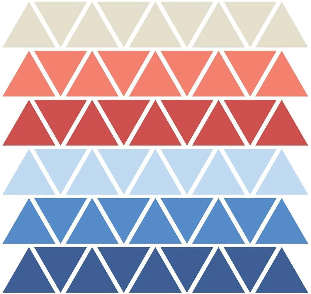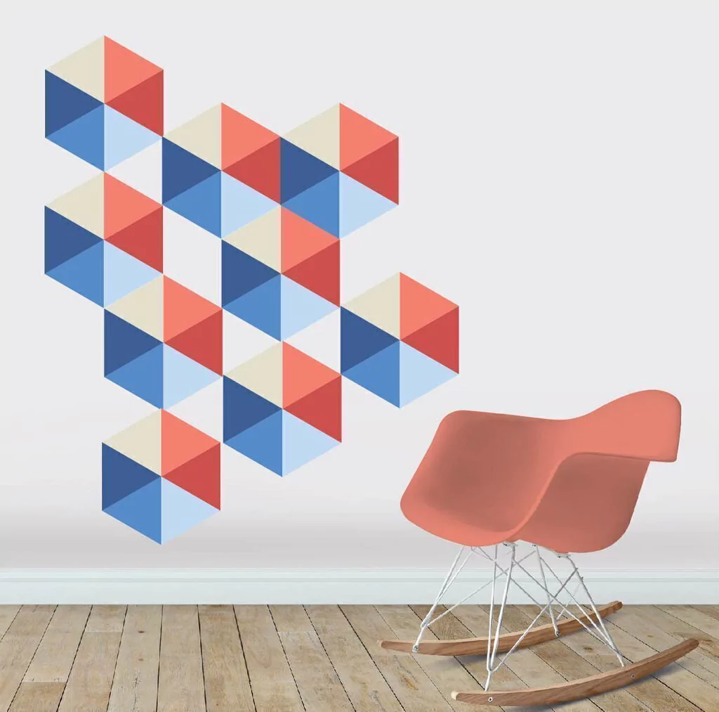 incluye una plancha de 60 x 60 cm. con 54 triángulos de 10 cm de lado para pegar como quieras, donde quieras.